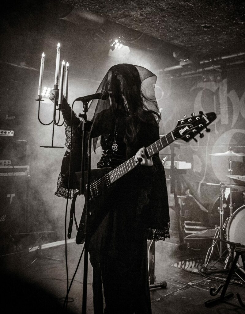 Demetra: Well, it sort of took time to get to where it is right now. The first band that I really listened to that you could say is occult music was Ghost, and I have to say I prefer their earlier releases, like Opus Eponymous, Infestissumam and Meliora. I really enjoyed the aspect of the occult and the doom vibes. I really like horror movies too, I generally like things that are a bit spooky so I decided to put that into my music too. For the song “Woman in the Black Veil”, the inspiration came from a nightmare I had: I was eating with my band in a park and when we finished and were leaving, there was this woman on a bench and she had a black veil and I couldn’t see her face. For some reason I felt like I recognized her even though I had never met her before. Suddenly she grabbed me and said, “it’s too early, you’re not supposed to be here”, then I woke up. This was extremely frightening and traumatizing as well, so I wrote a song about it and I feel like I channel the “Woman in the Black Veil” every time I wear the veil on stage. It’s sort of me telling her that I heard what she said and I didn’t quite understand it but I’m going to continue channeling her ominous presence every time I play that song. I don’t know if it was a sign but I have to say that maybe that was the beginning. It began for me my whole journey into occult and doom metal.